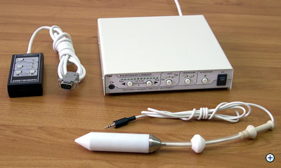 Для обеспечения возможности управления основными режимами (частотой вибрации, режимом свипирования, модуляцией) самим пациентом в составе приставки предусмотрен выносной пульт. |